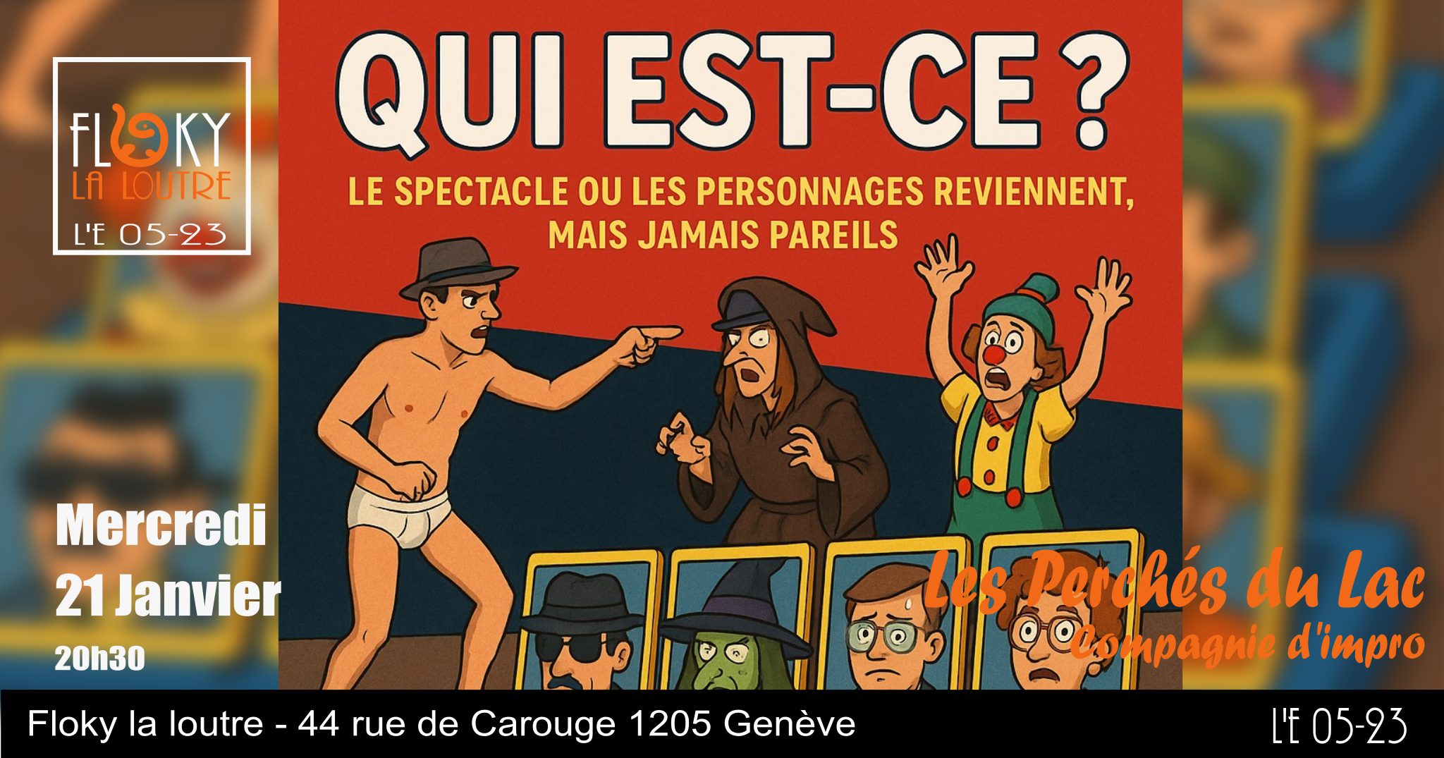 Floky la loutre 44 rue de Carouge, GenèveRenegade Saints present The Living Room Five improvisers settle into a living-room chat. Curiosity sparks ideas, ideas weave into discoveries, and the room becomes a warm, playful world of scenes, laughter, and heart! Performers: Izïa Vallaeys, Arthur Nguyễn, Yohann Thenaisie,…