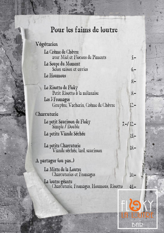Floky la loutre bar est un espace de rencontres et de partage. Il est habillé de mobilier de brocante urbaine et de magnifiques colonnes de pierres brutes parfois dissimulées sous une épaisse couche de plâtre et de crépis.
